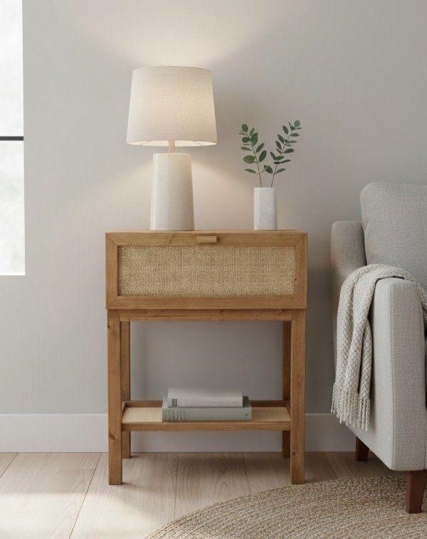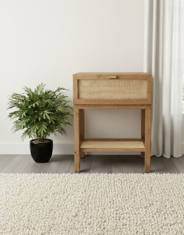 Incluye: 1 respaldo de fibras naturales + 2 mesas de luz