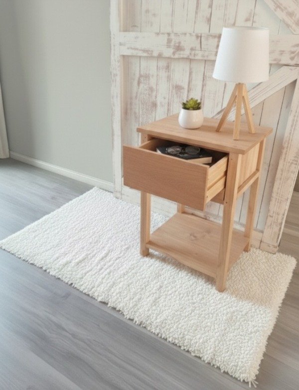Medida mesas: 70 alto x 50 ancho x 40 profundidad y cajón con guías metálicas.