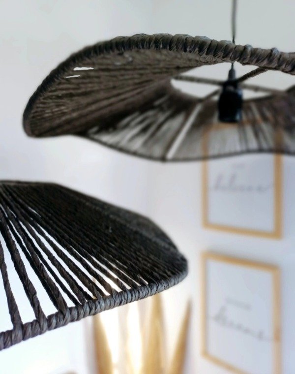 Lámpara con trama tejida en hilo de palma