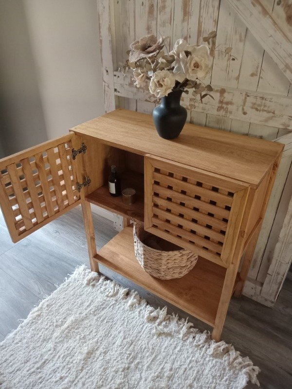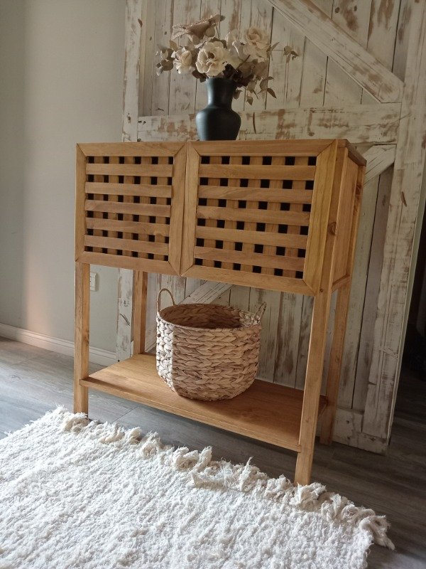 Consolacon puertas rejilla en madera Oregón con tinte color roble claro.