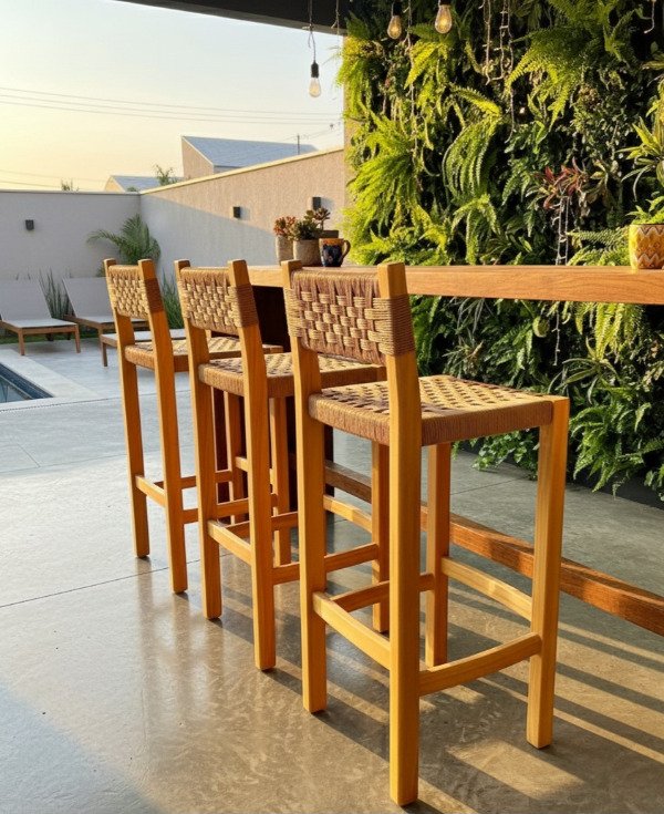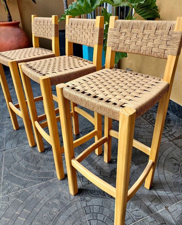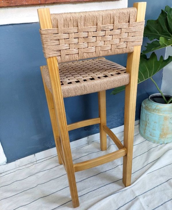 BANQUETAS ALTAS MADERA OREGÓN CON ASIENTO TEJIDO EN KRAF