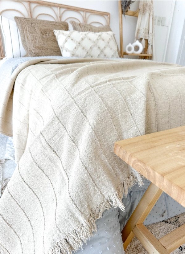 MANTA JAZMIN DE ALGODON! Una opción gruesita y super grande, ideal para darle un toque acogedor a tu cama o sillon.